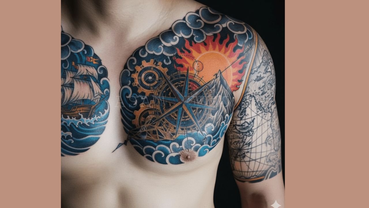 Dragons, lions, wings, or geometric designs maximize chest space. Tattoos convey strength, confidence, and individuality.